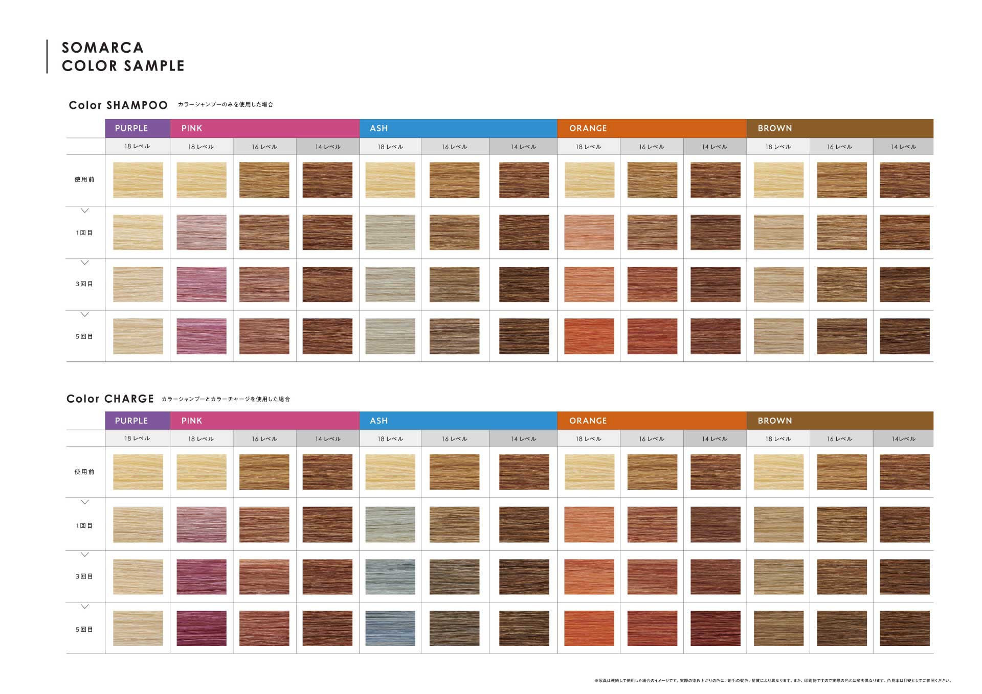 サロンワークで使いやすい大容量ボトルは、トレンドの3色を展開。ペアパックは、サロンカラー後の色素ケアとしてプラスメニューにも。